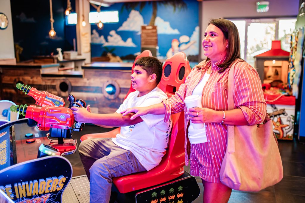 Families can enjoy a round of Mini Golf, bundled up in the Florida winter weather, making it a classic activity everyone can enjoy. Younger kids have their own world to explore in the Funtasia Play Area, an indoor playground filled with slides, tubes, and obstacles – the perfect spot for little ones to burn energy while parents watch nearby!