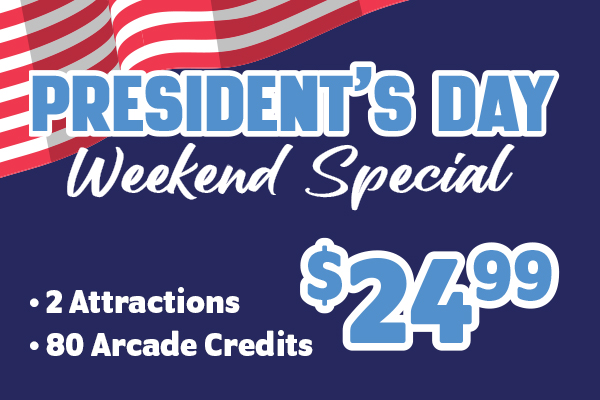Make this long weekend even more special by spending time at Family Fun Center! February 13-16 for only $24.99 get