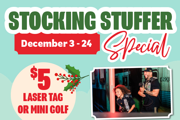 Our Stocking Stuffer special is live! Get $5 Laser Tag or Mini Golf, our early Christmas gift to you!